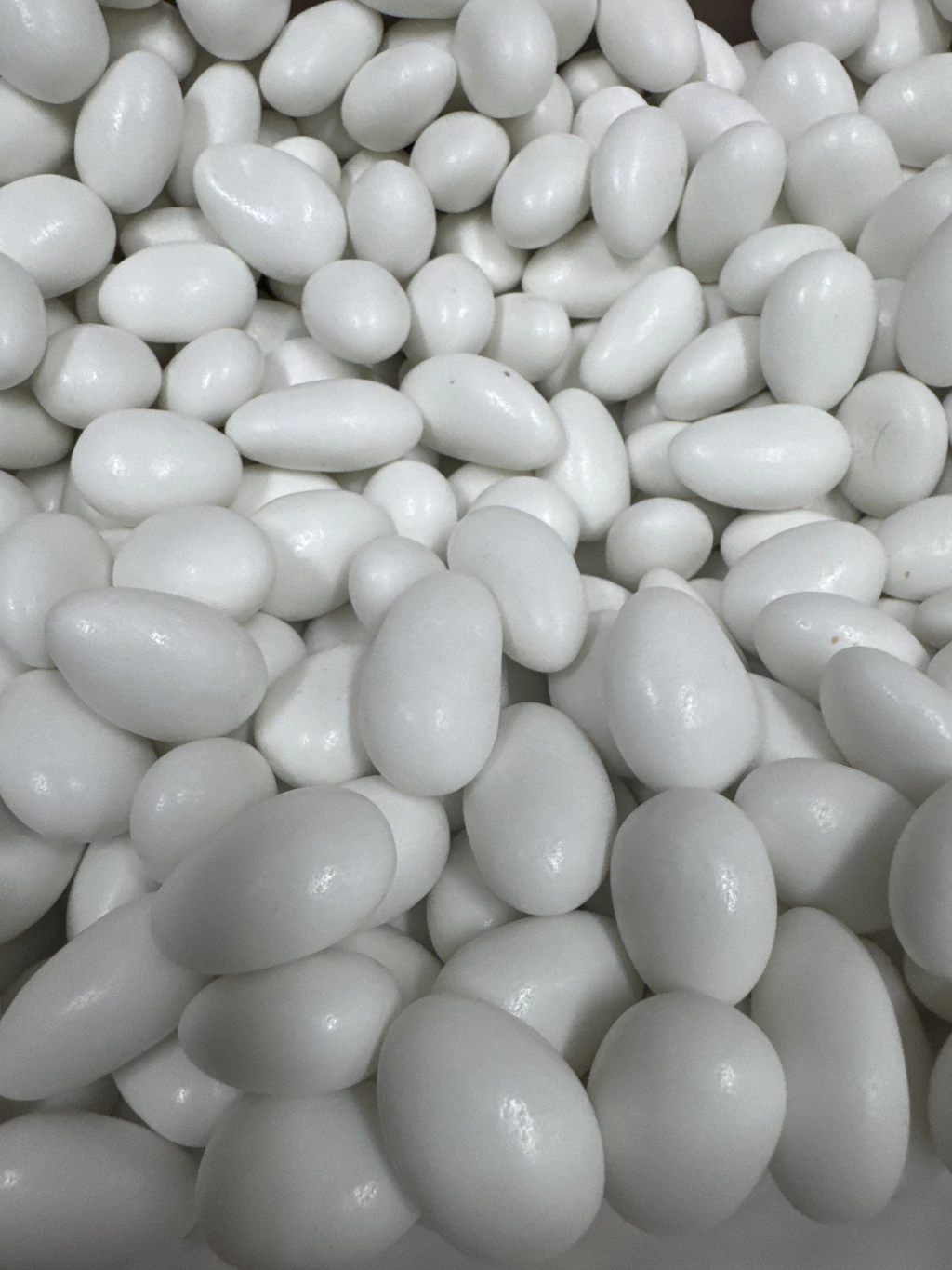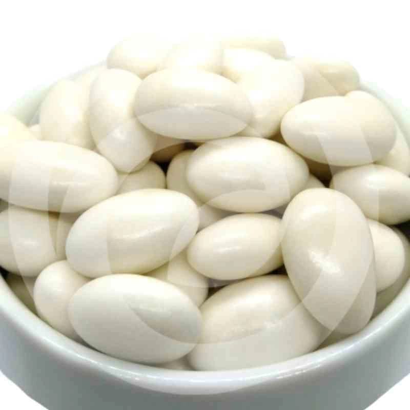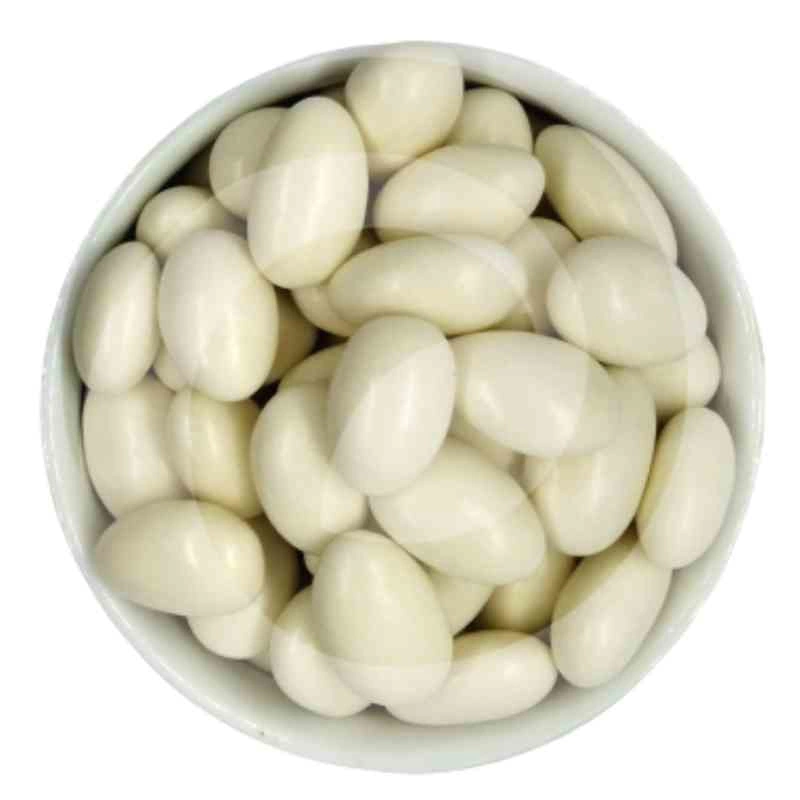 Amêndoa confeitada branca é enviada em sacos transparentes lacrados para chegarem frescos e bonitos. Nossos produtos são de primeira qualidade com garantia de satisfação 100%.
